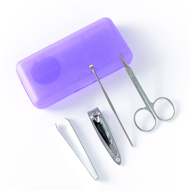 / 便攜式指甲剪4件套裝多功能不銹鋼指甲刀修甲套糖果色指甲剪盒裝