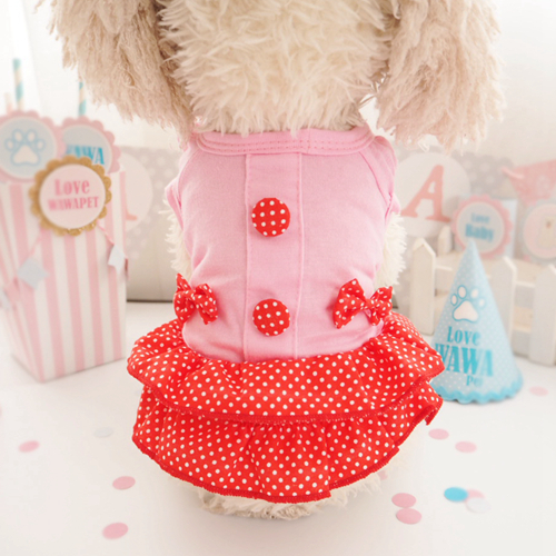 / 撞色波點裙寵物泰迪狗狗衣服春夏款貴賓犬貓咪服裝清新公主