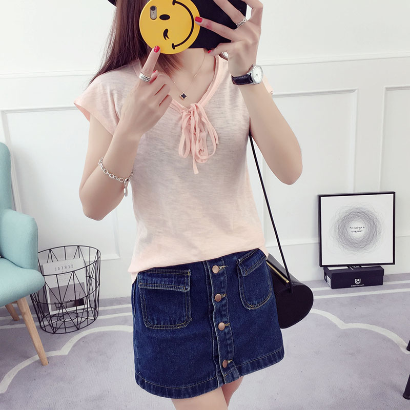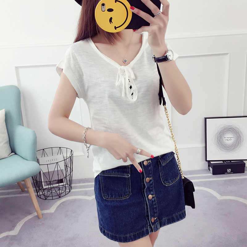 白色t恤女短款秋季上衣韓版百搭寬松顯瘦修身半袖女裝小衫打底衫