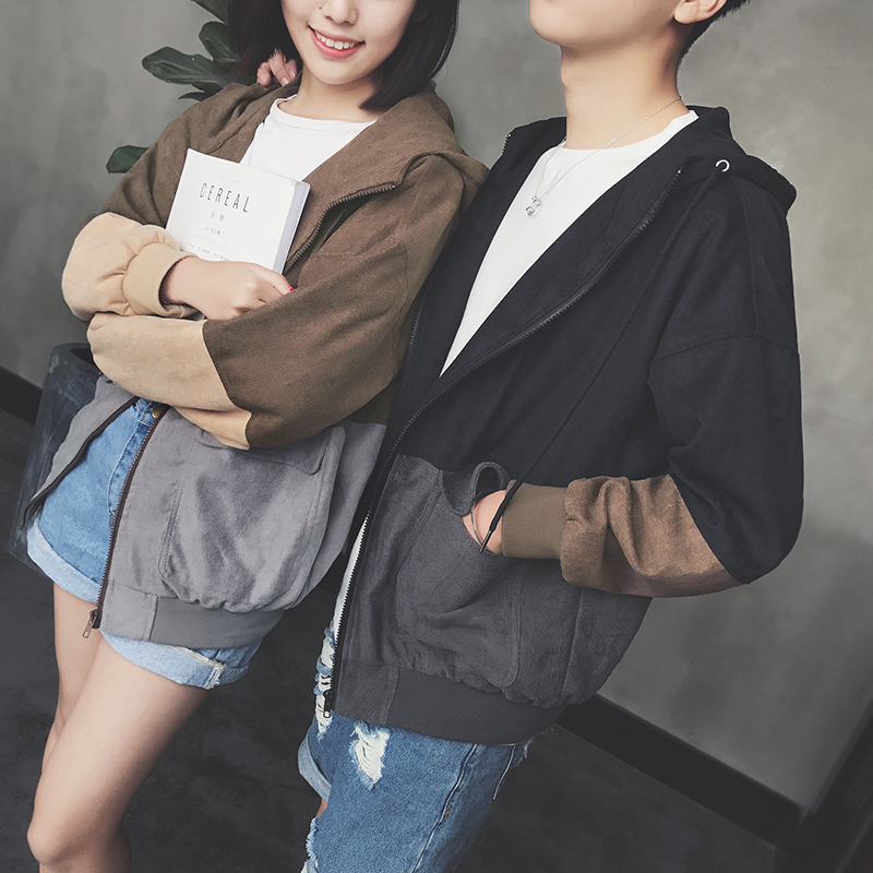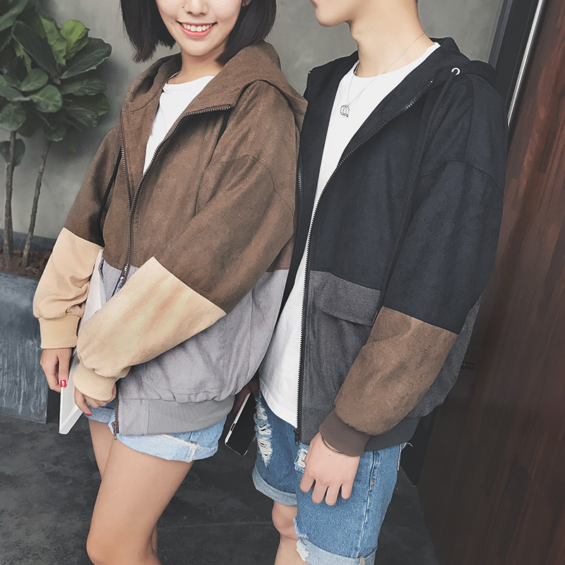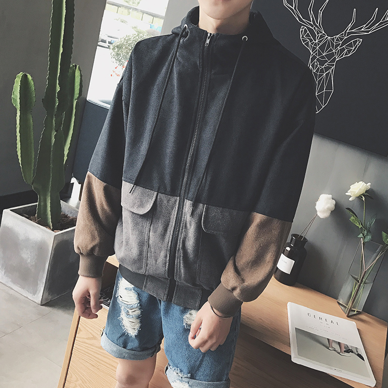 / 男裝春裝新款拼接韓版連帽男士夾克寬松休閑外套