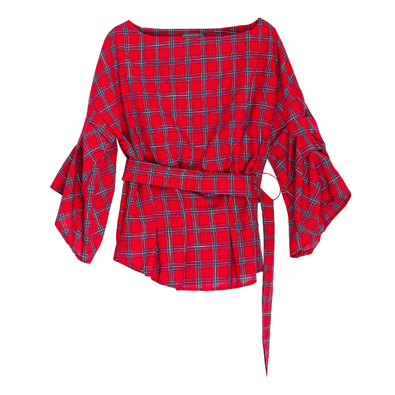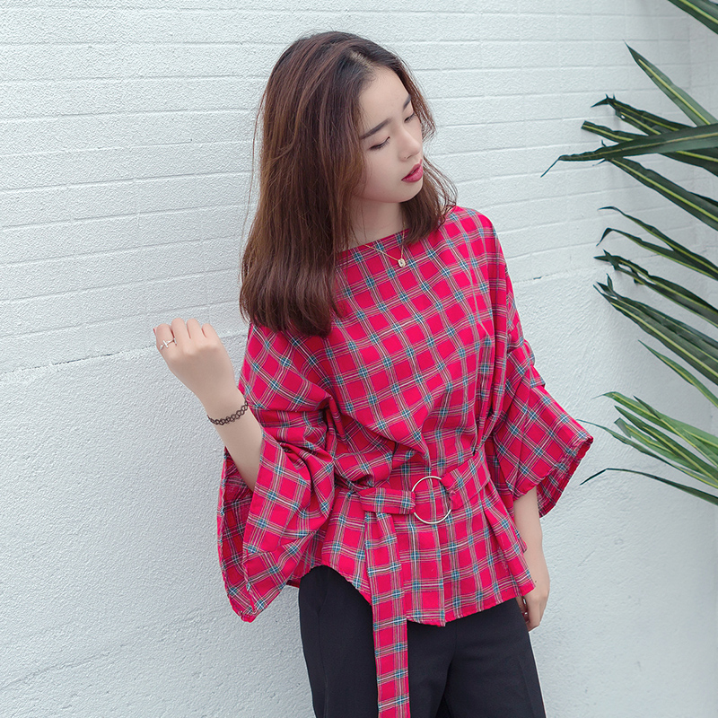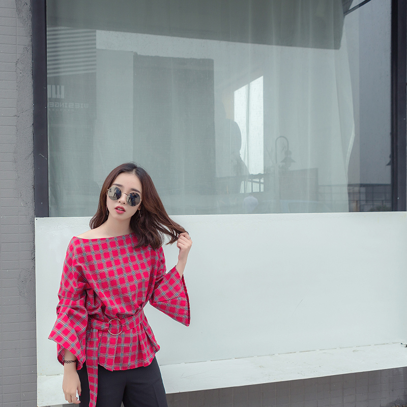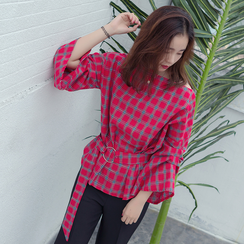 露肩亮點,基本百搭的罩衫 女人味十足的而設計,格子印圖罩衫