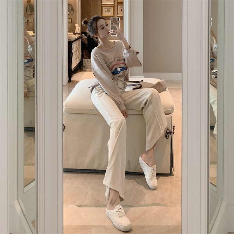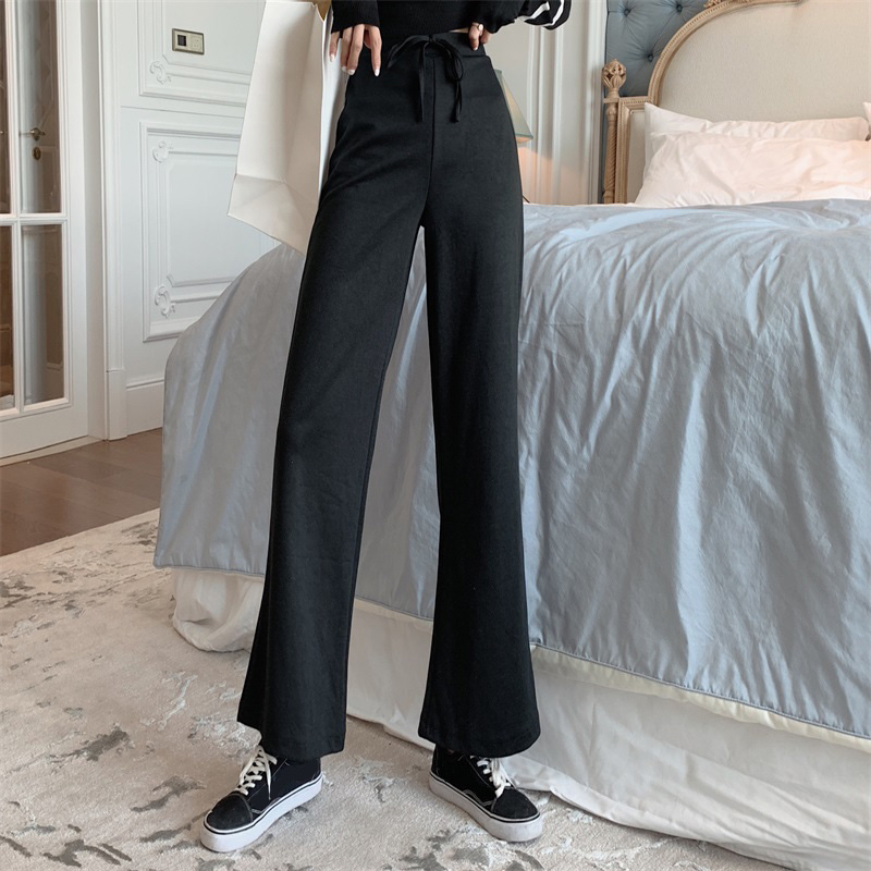 / 褲子女秋冬2018新款寬松百搭闊腿褲高腰顯瘦直筒褲休閑拖地長褲潮