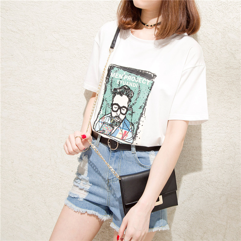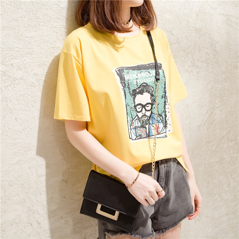 復古港味t恤女寬松bf風小清新心機上衣服體恤短袖女夏裝新款