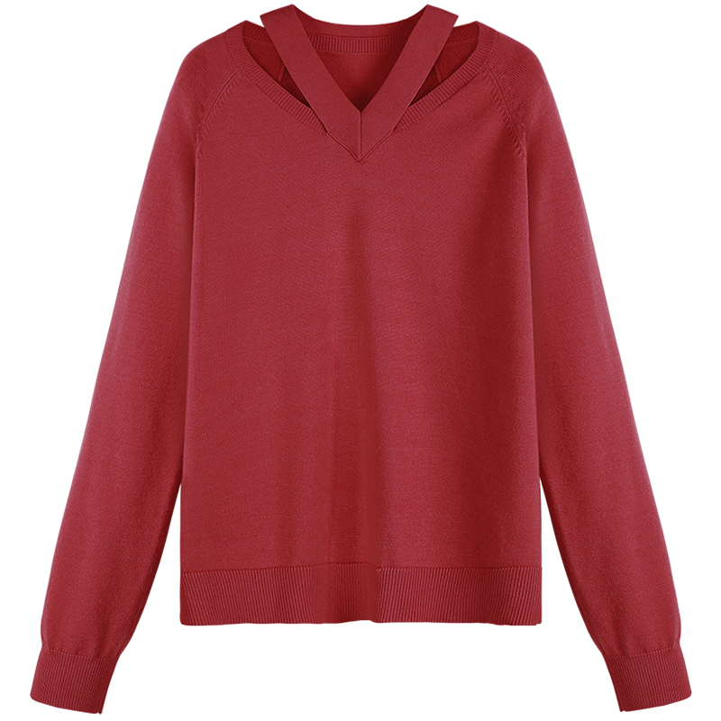 MG小象v領粉色毛衣女秋冬套頭小清新上衣2018新款寬松甜美針織衫