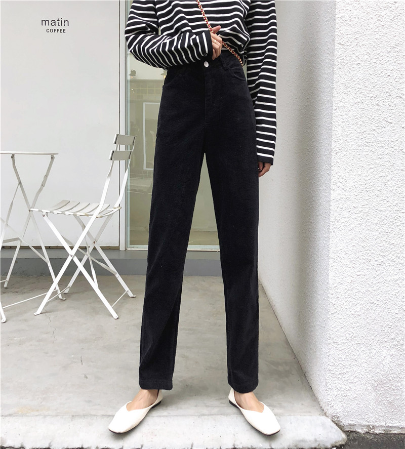/ 褲子女新款時尚chic百搭氣質寬松韓版條絨九分褲冬季顯瘦哈倫褲潮