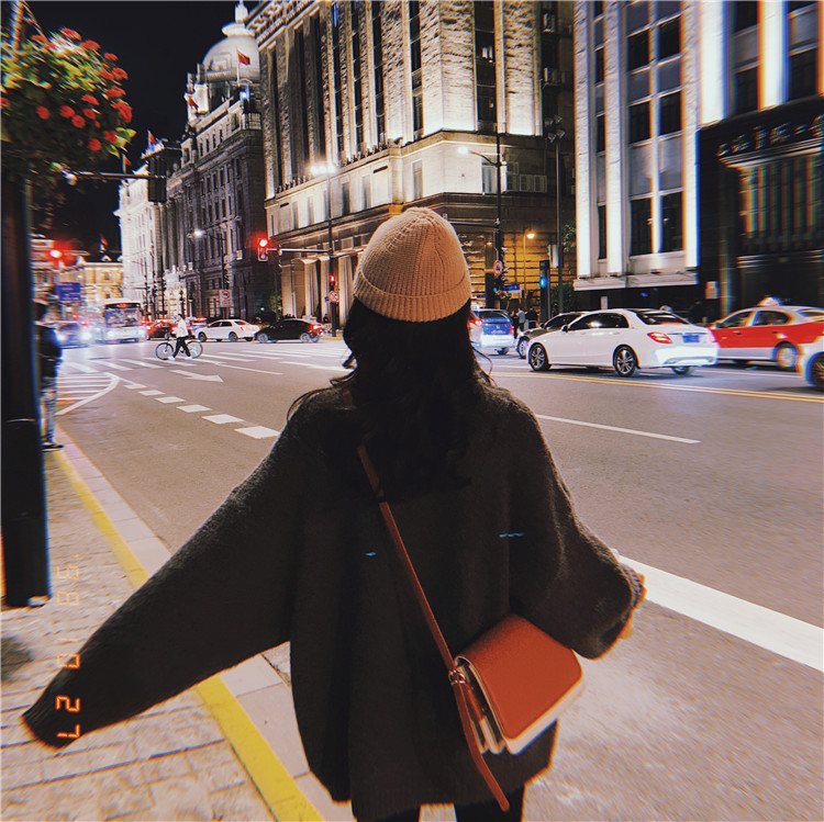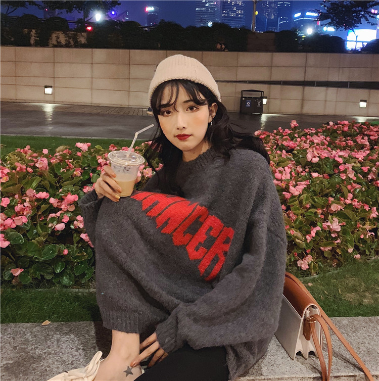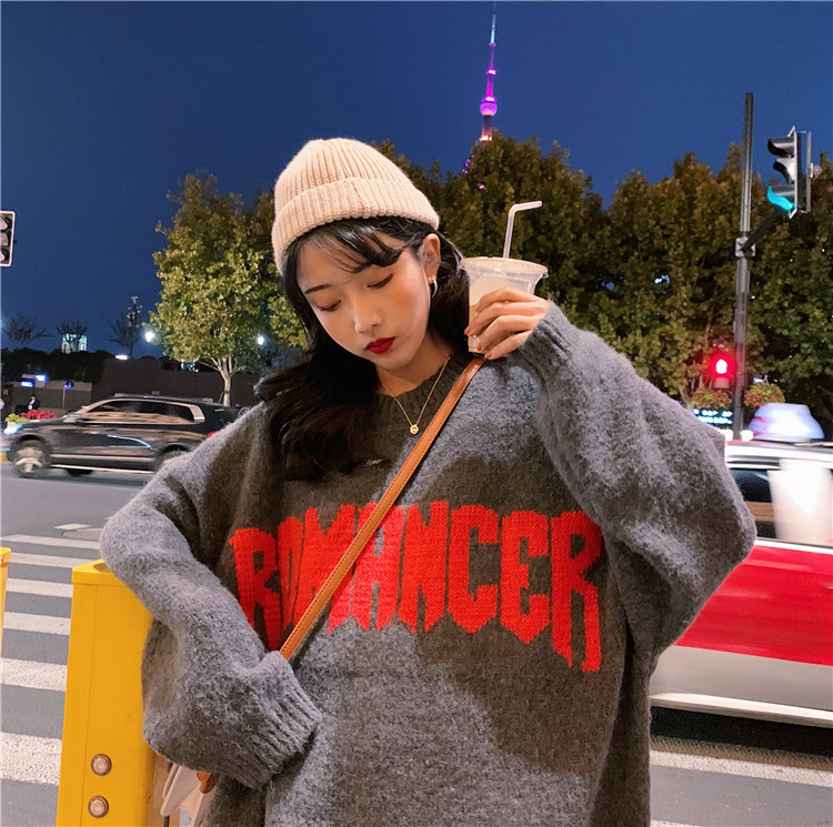 / 2018秋冬新款韓版時尚百搭復古chic上衣女寬松慵懶加厚提花毛衣潮