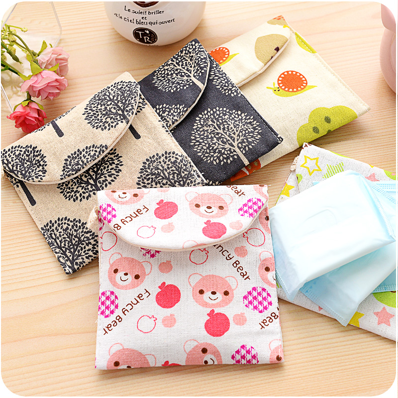 可愛小清新多圖案衛生棉包 女生姨媽巾收納包 裝衛生巾的棉布包