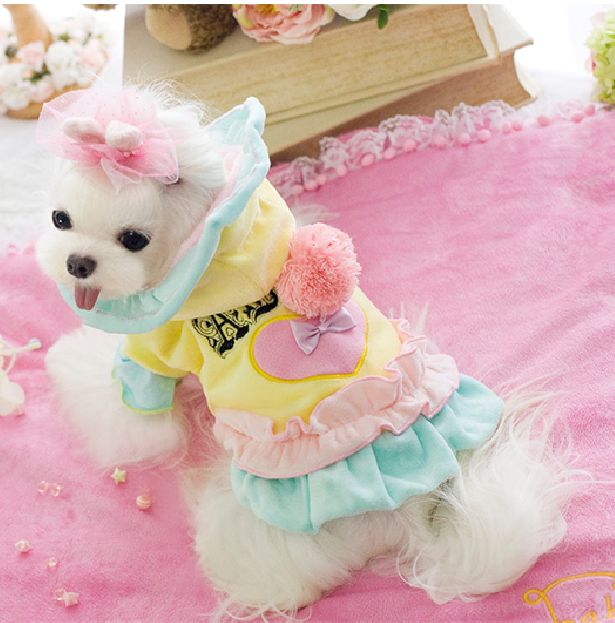 冰淇淋撞色花邊棉衣 寵物連衣裙狗狗衣服泰迪