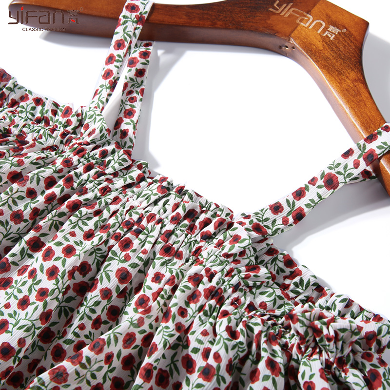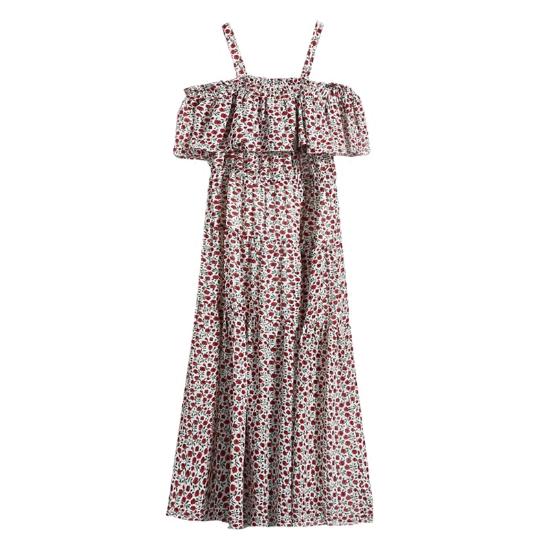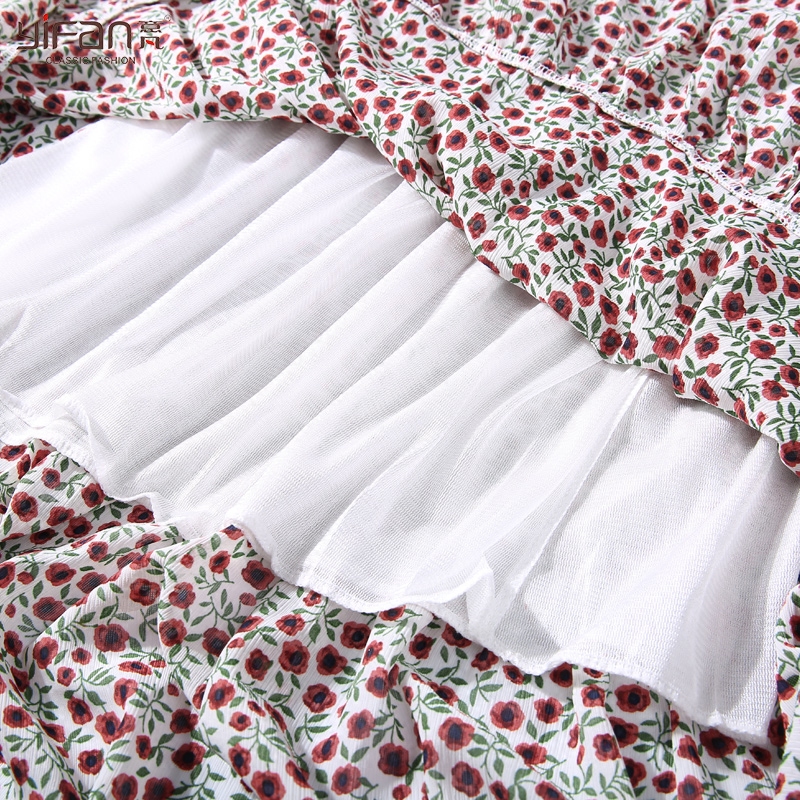 / 吊帶連衣裙夏季新款松緊腰顯瘦一字肩露肩碎花雪紡連衣裙短袖
