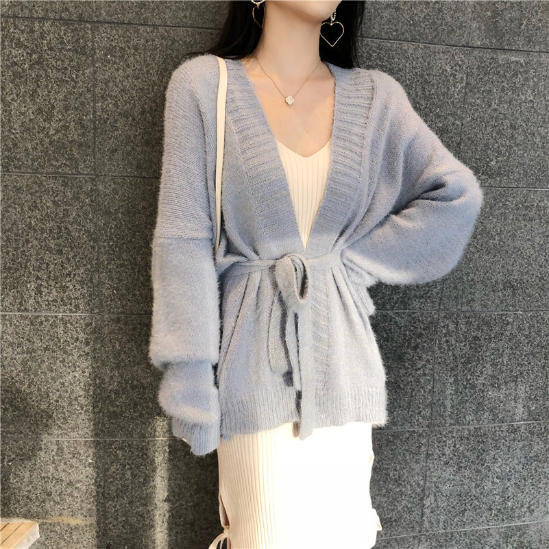 2018秋季新款百搭寬松開衫中長款外套女V領針織打底裙時尚套裝潮
