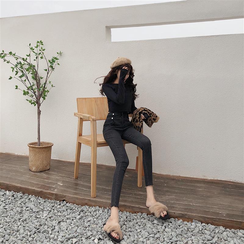 / 褲子新款韓國顯瘦高腰chic牛仔褲修身百搭顯瘦彈力小腳鉛筆褲女潮