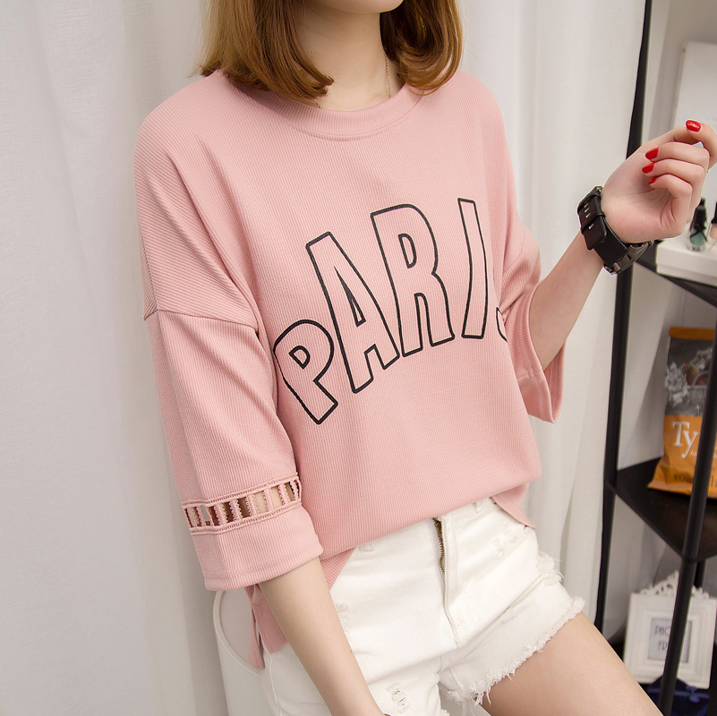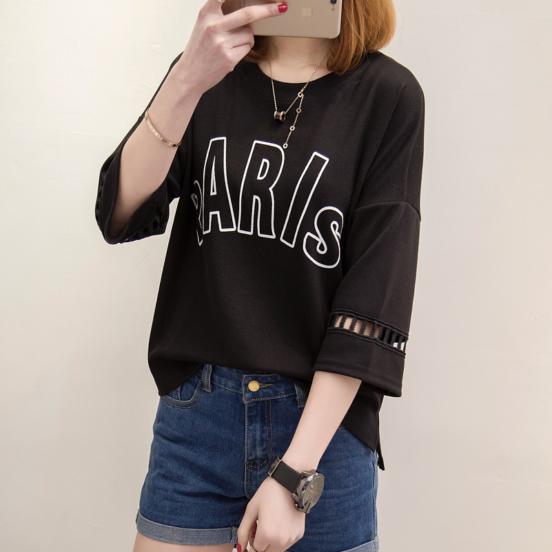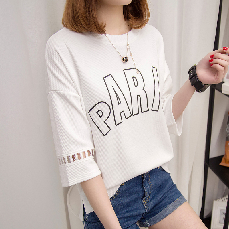 / 短袖t恤女中長袖上衣女夏裝打底衫寬松韓版白色體恤衫半袖百搭潮