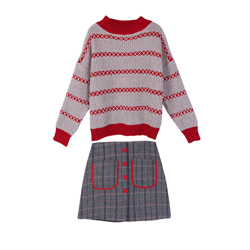 / 新款洋氣網紅慵懶套裝減齡毛衣秋季小心機俏皮半身裙女裝兩件套潮