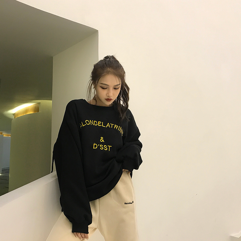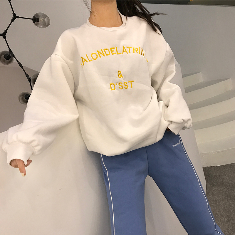 復古chic新款韓版百搭秋冬加厚加絨寬松長袖上衣女小清新保暖衛衣