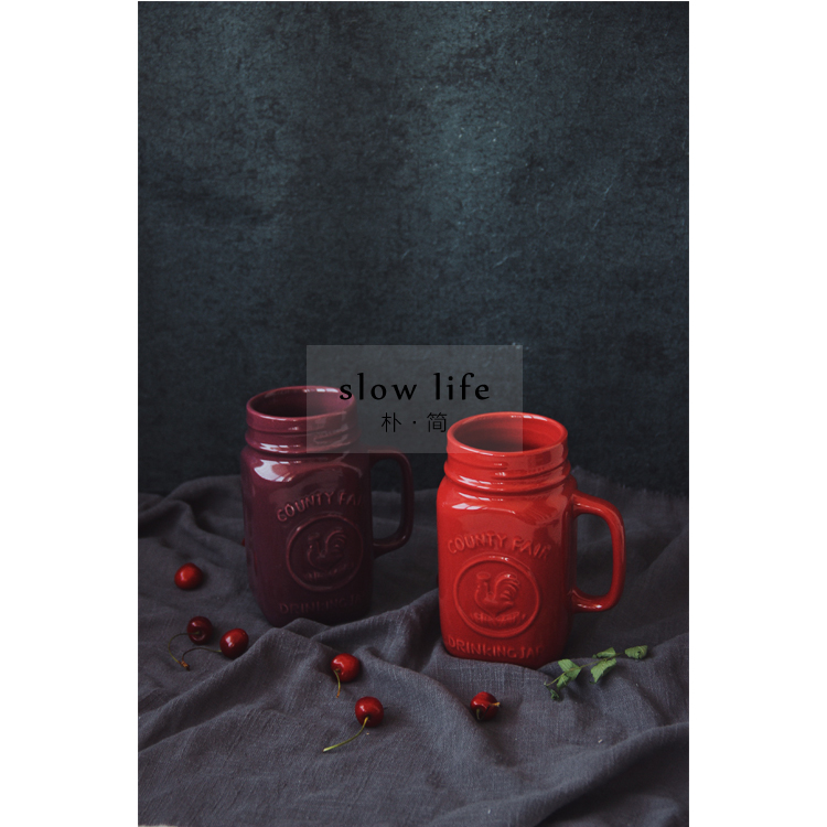 外貿出口復古浮雕梅森字母馬克陶瓷杯 水杯 牛奶果汁杯UFFXFAWe