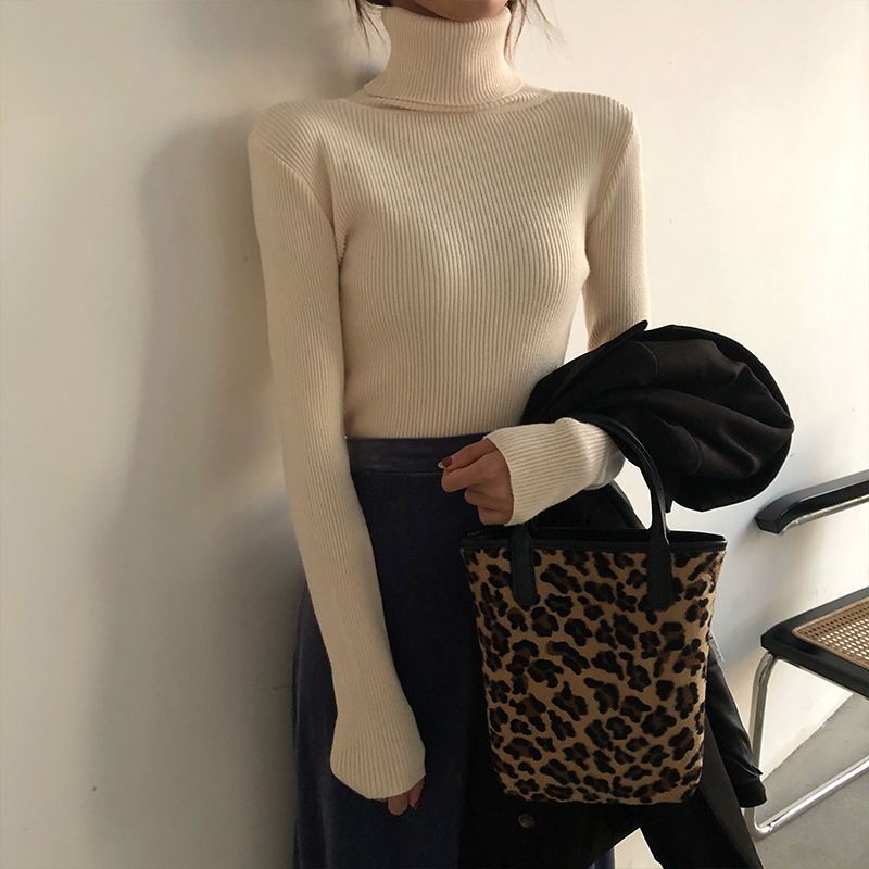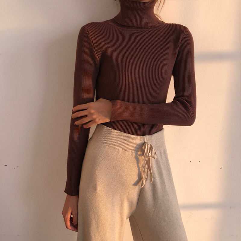 / 秋冬新款韓版時尚chic百搭修身顯瘦上衣女純色加厚高領打底針織衫