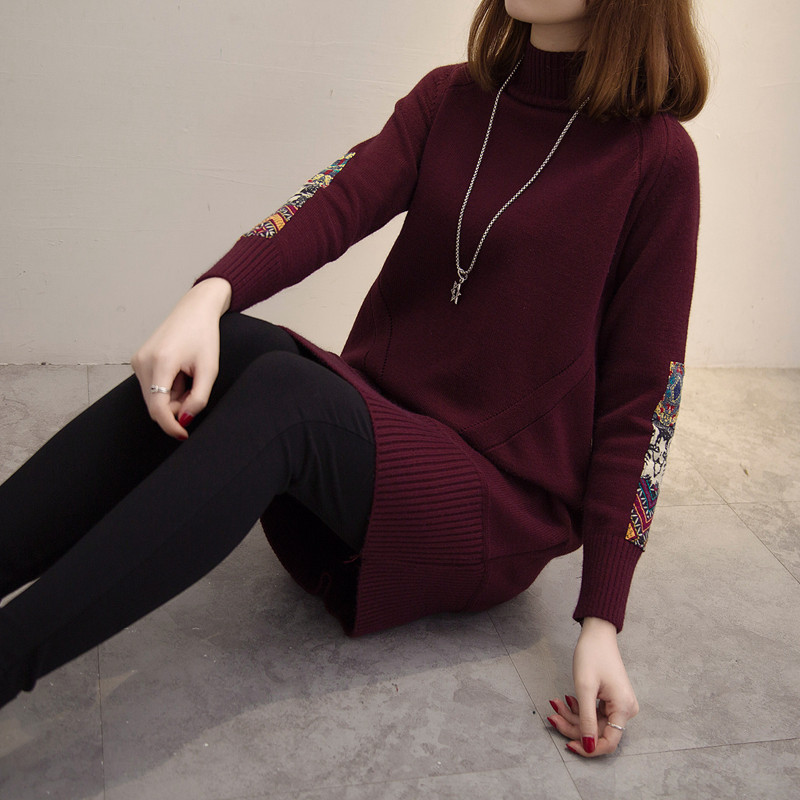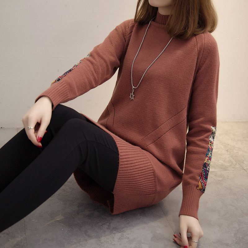 / 秋冬毛線衣加厚半高領打底針織衫毛衣裙中長款套頭韓版寬松毛衣女