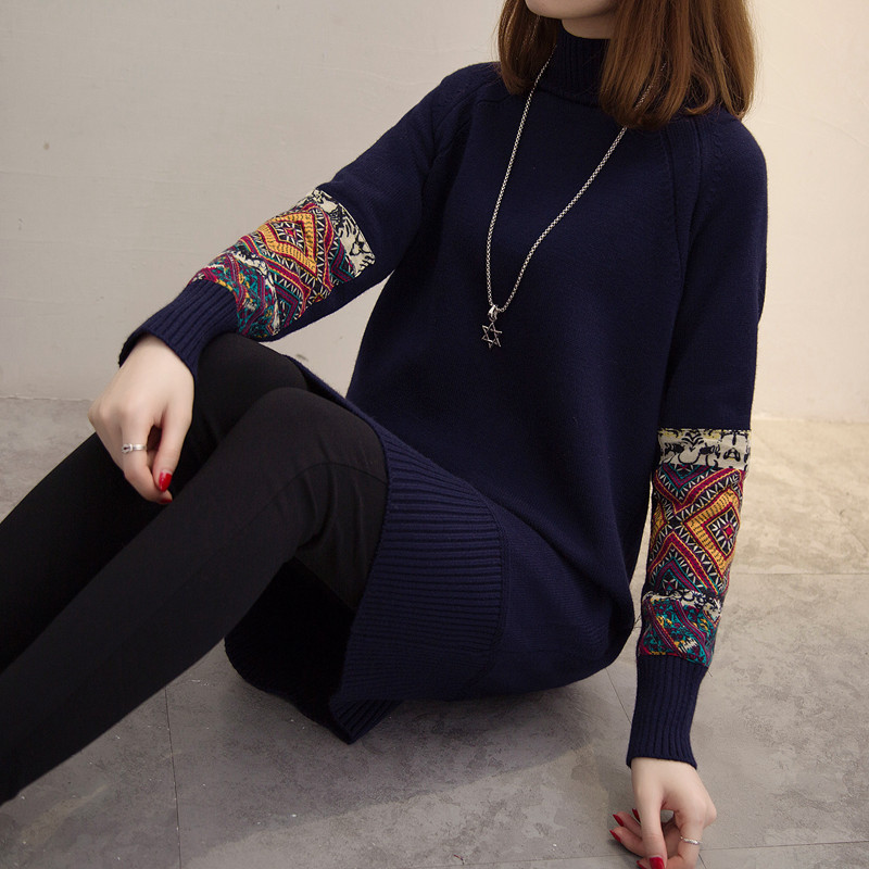 秋冬毛線衣加厚半高領打底針織衫毛衣裙中長款套頭韓版寬松毛衣女