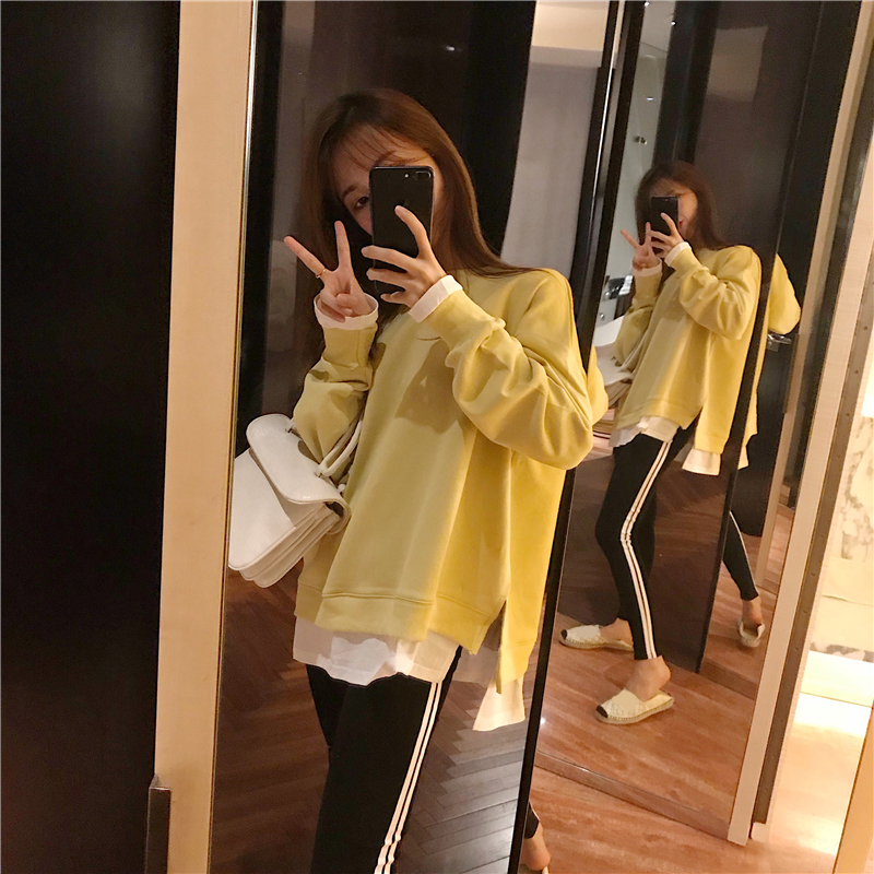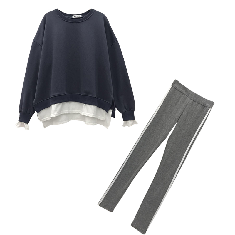 新款韓版時尚套裝寬松慵懶風拼色衛衣緊身小腳褲長褲子chic兩件套