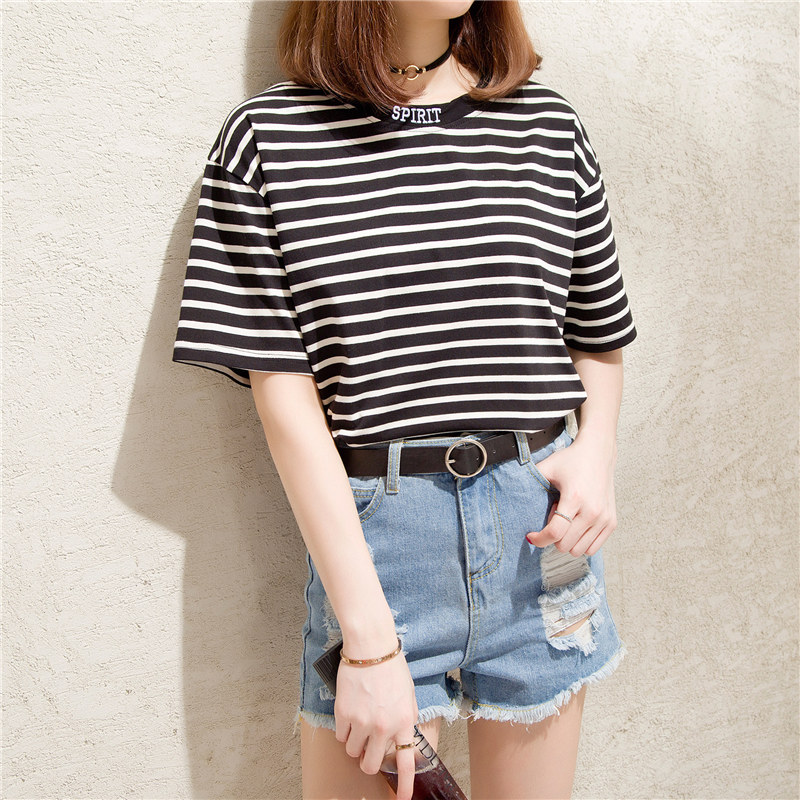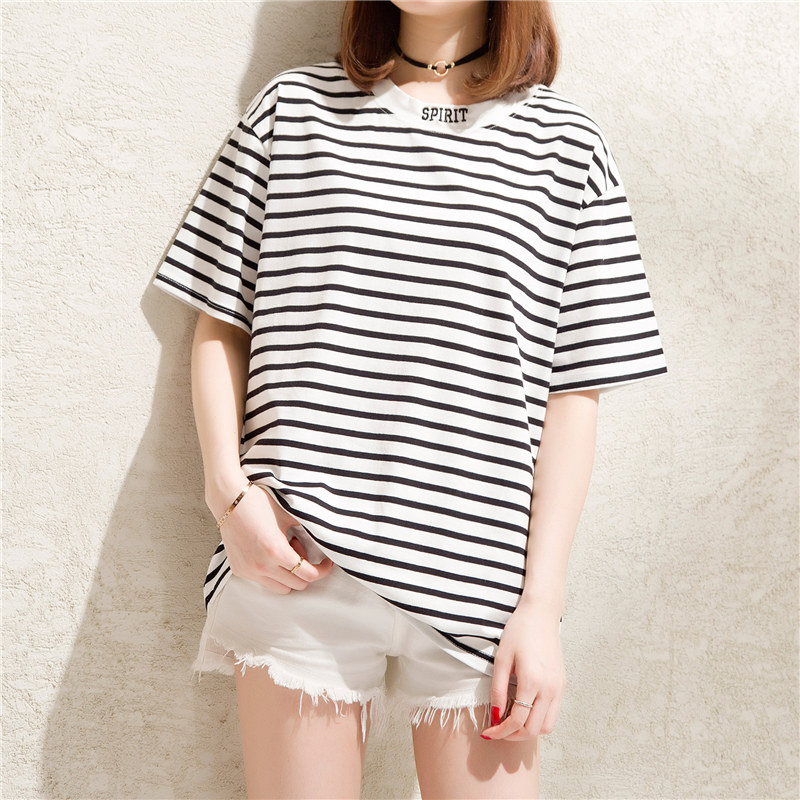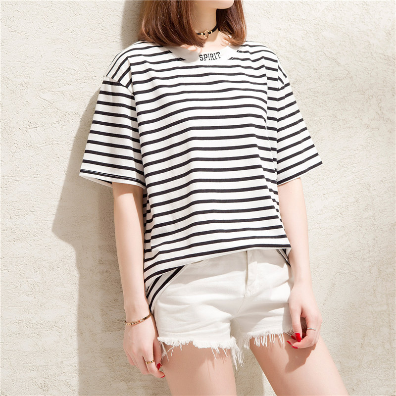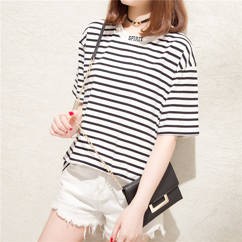 / 條紋t恤女小清新寬松體恤衫短袖bf風韓版心機上衣女夏裝新款