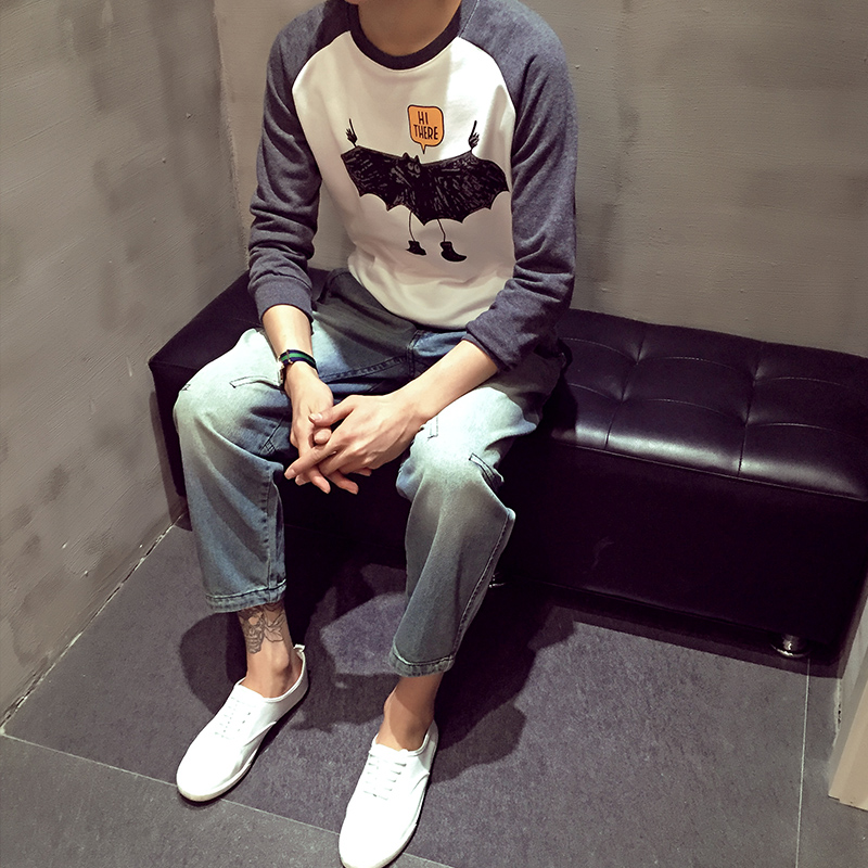 / 春季新款韓版蝙蝠印花卡通男士插肩袖圓領套頭衛衣