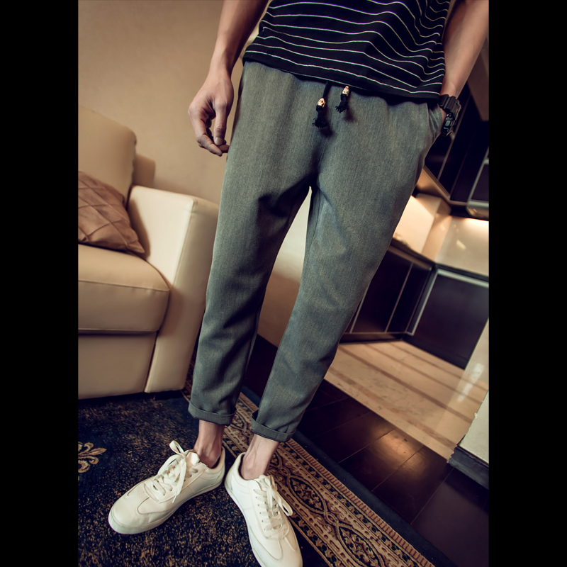 新品日系春季九分褲男大碼哈倫男褲寬松小腳褲