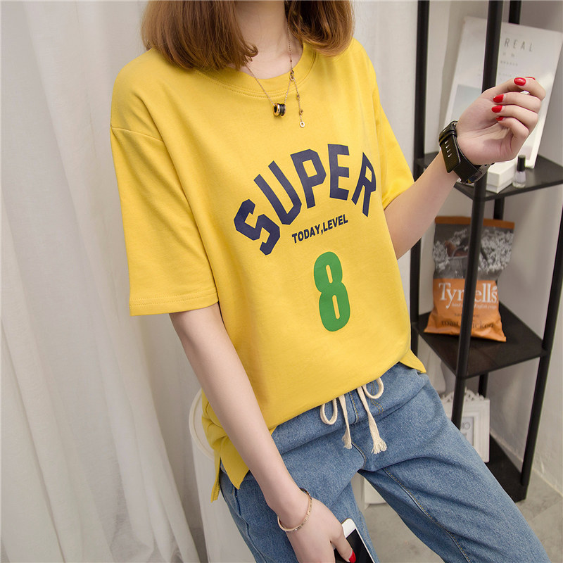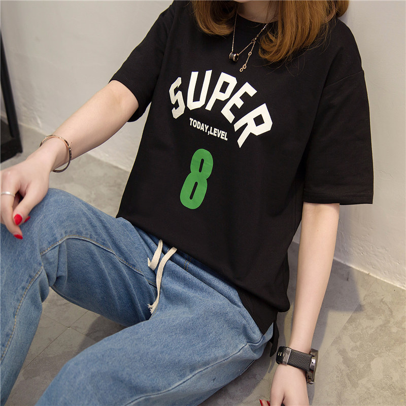 短袖上衣女夏新款女裝字母白色t恤女寬松韓版打底體恤衫百搭