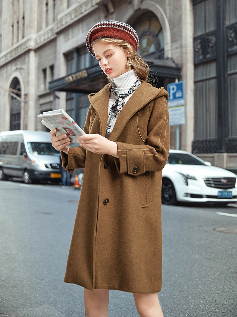 MG小象連帽呢子大衣女中長款寬松2018新款復古學生冬季毛呢外套潮