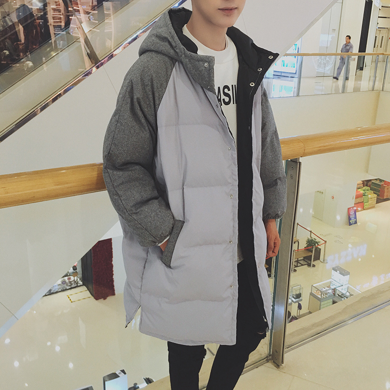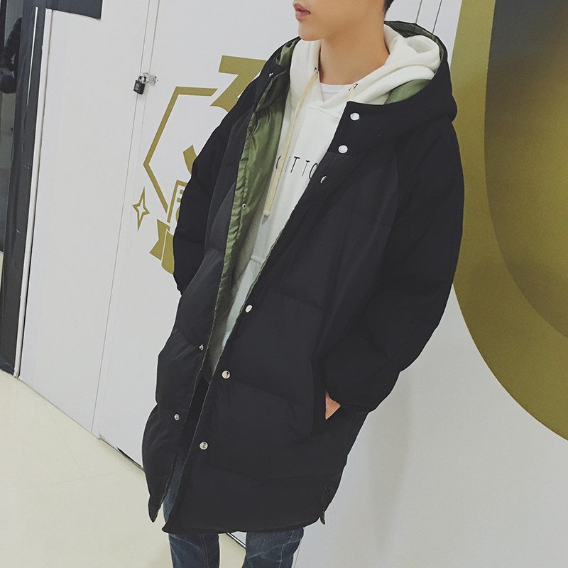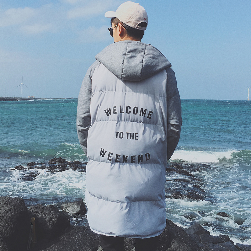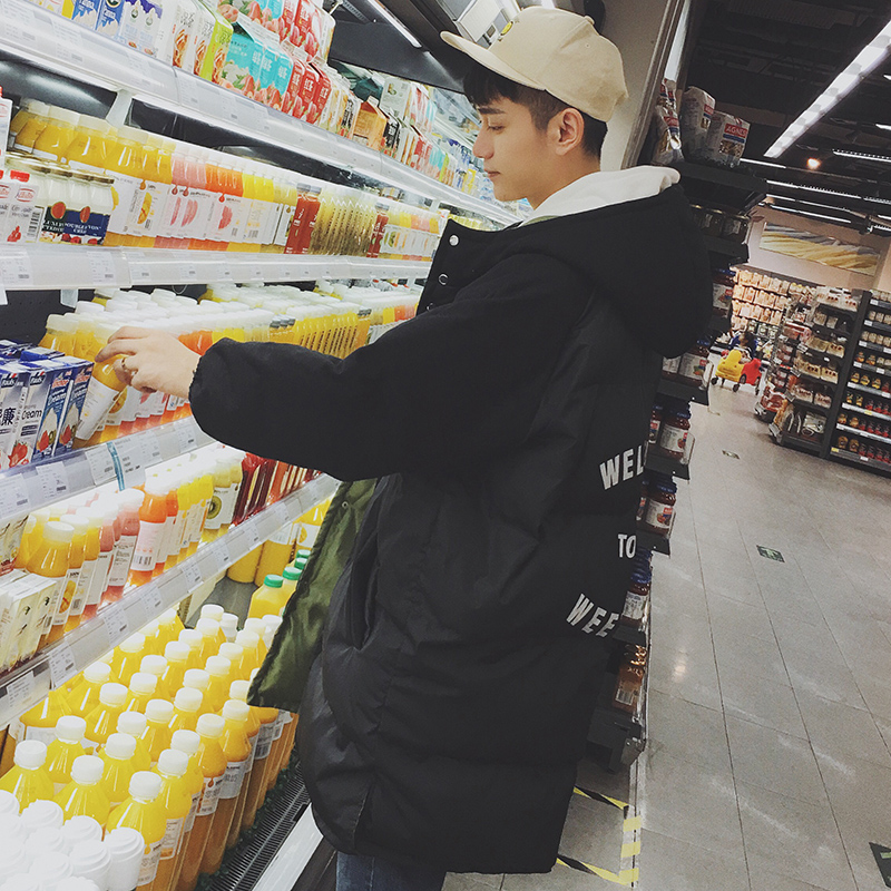 / 男裝韓版字母印花連帽中長款連帽男士寬松保暖棉衣