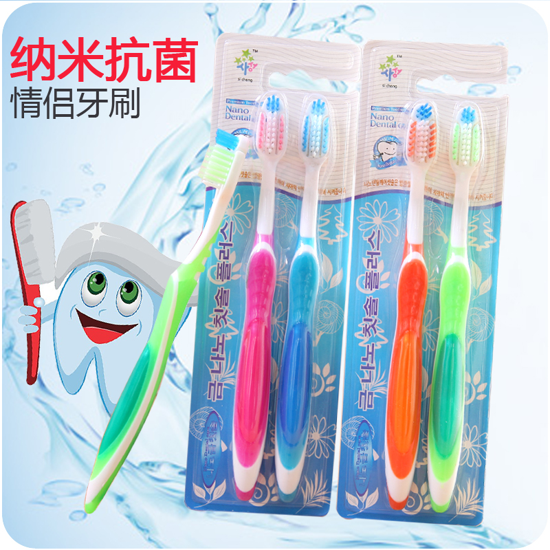 / 韓國納米雙層抗菌情侶牙刷細纖維軟毛2支裝套裝絲柔細毛牙刷批量