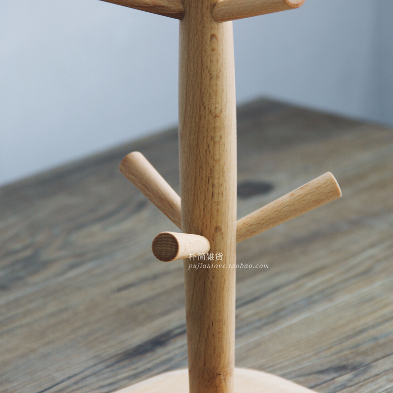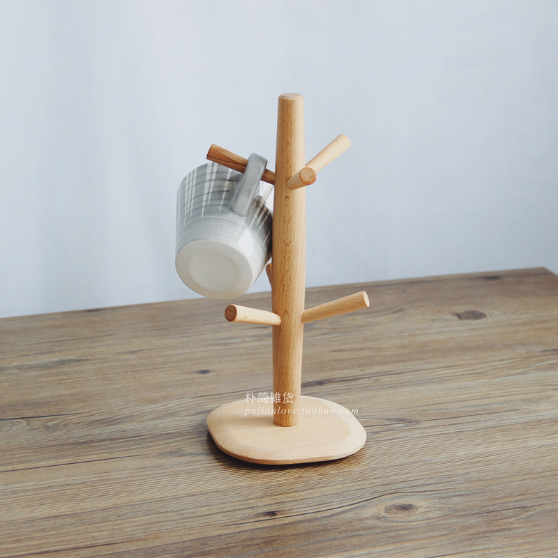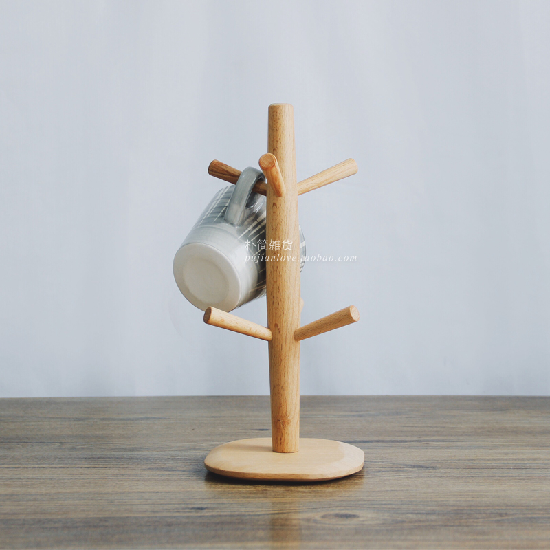 日式廚房紙巾架 櫸木置物架 杯架 六爪櫸木杯子掛架杯托收納架