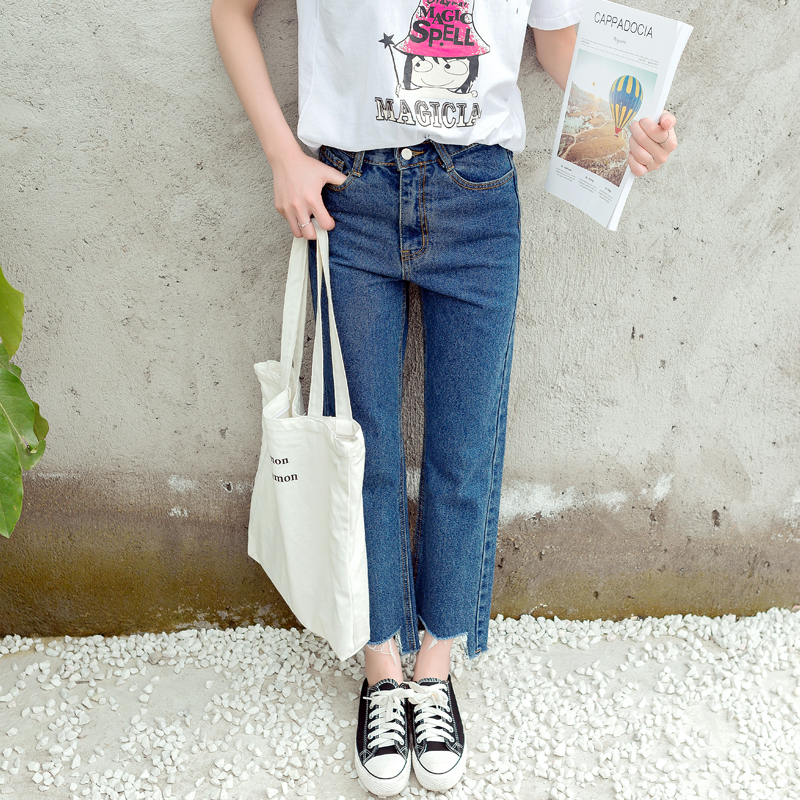/ 夏季新款韓版時尚寬松直筒褲流蘇九分牛仔褲女學生休閑褲子潮