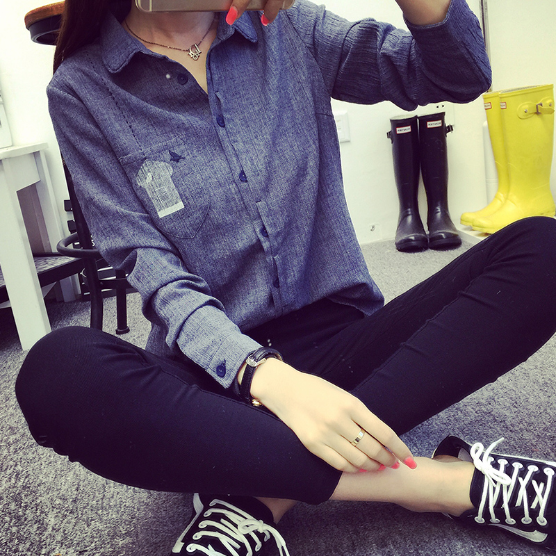 / 秋裝新款韓版女裝休閑牛仔色長袖襯衫寬松打底衫女襯衣
