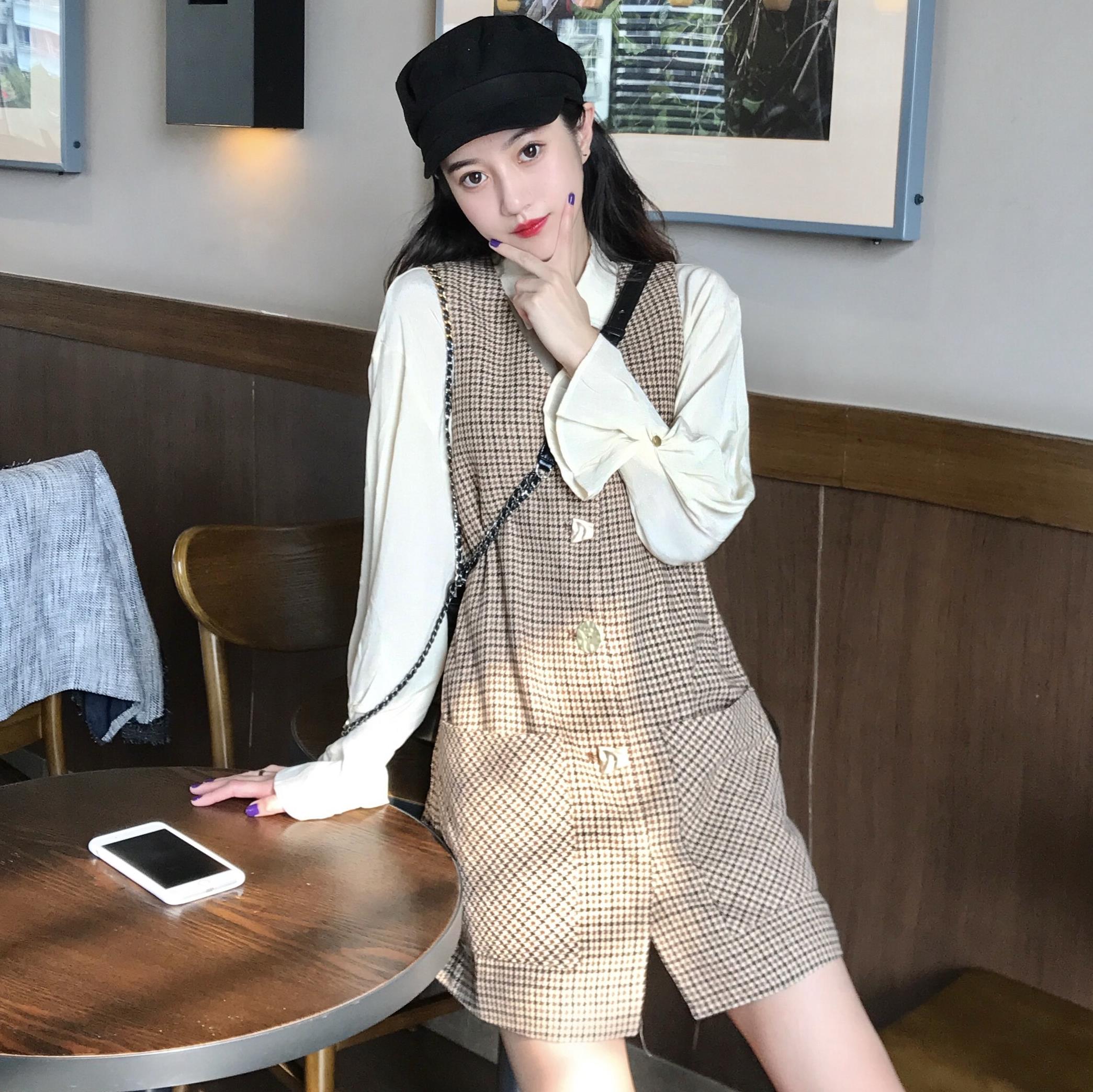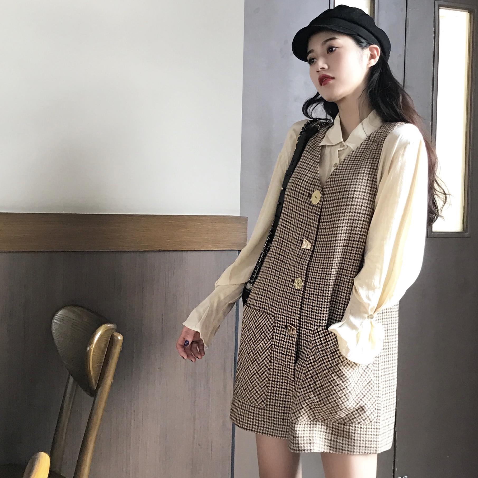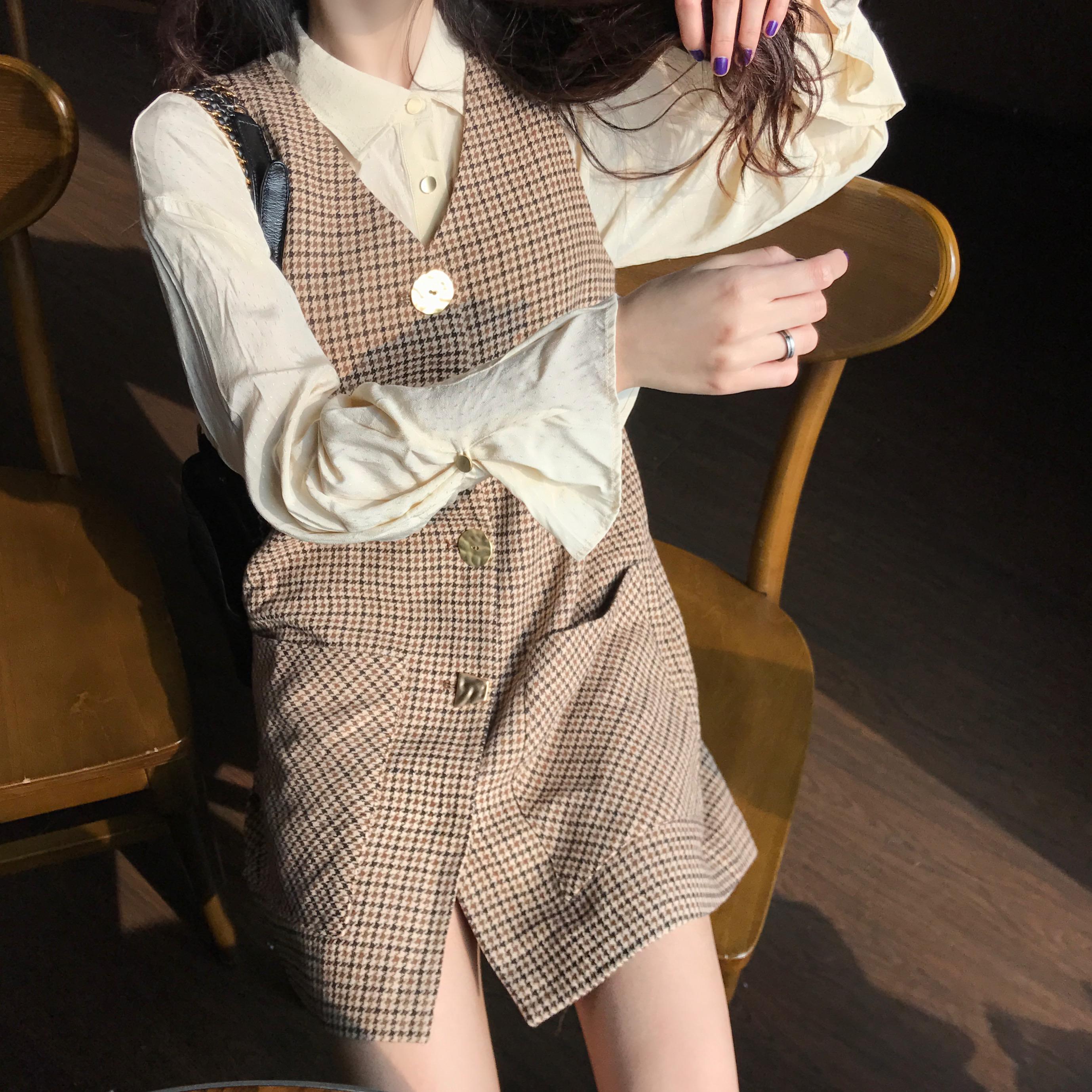 / 2018秋冬新款韓版時尚套裝網紅休閑襯衫千鳥格背心裙氣質兩件套女
