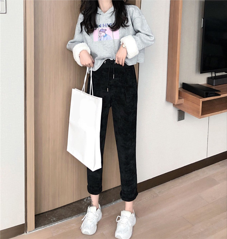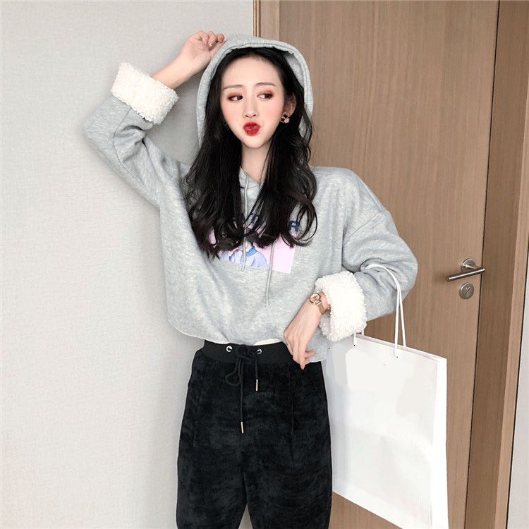 / 新款秋冬女裝兩件套袖口毛毛字母加絨連帽衛衣加絨休閑褲時尚套裝