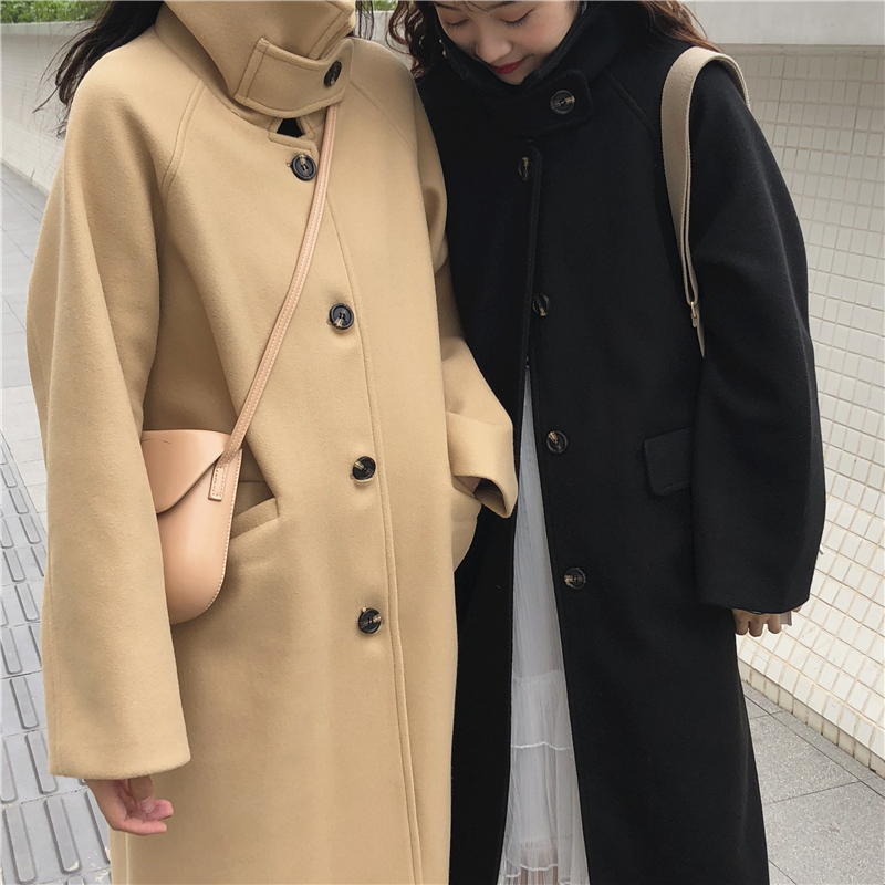韓國秋冬新款chic時尚百搭氣質保暖寬松大衣氣質加厚長款呢子外套