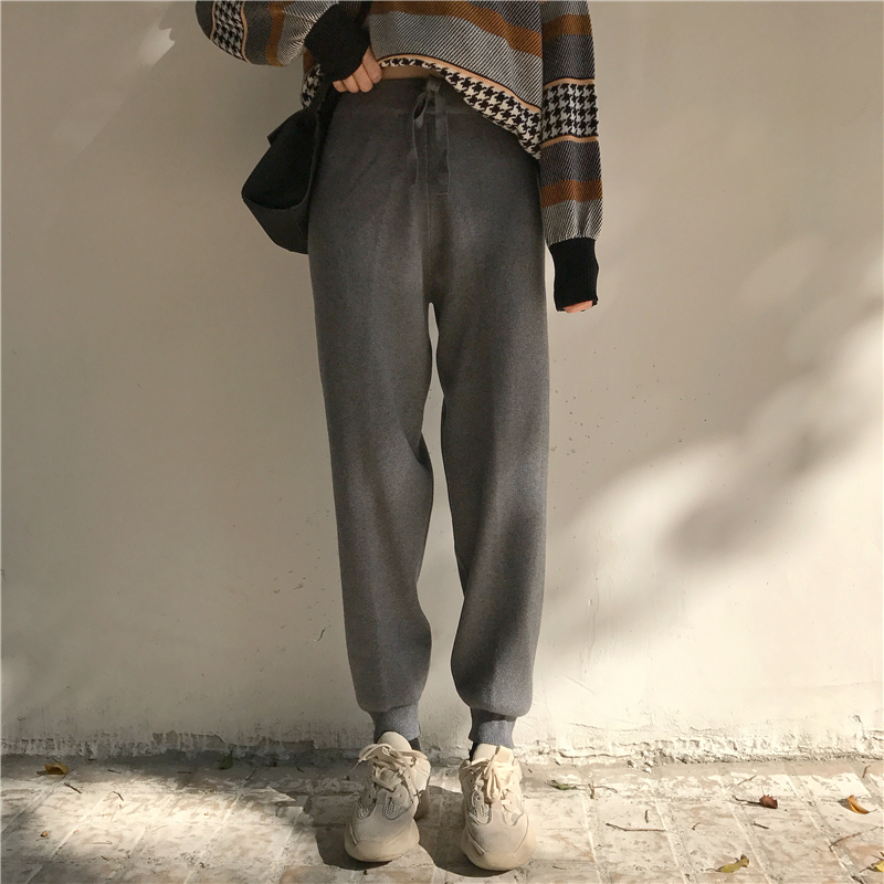 / 網紅同款包芯紗寬松針織上衣+百搭針織蘿卜褲