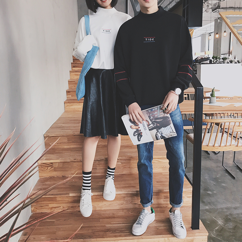 / 男裝韓版時尚條紋印花圓領套頭男士衛衣外套情侶裝