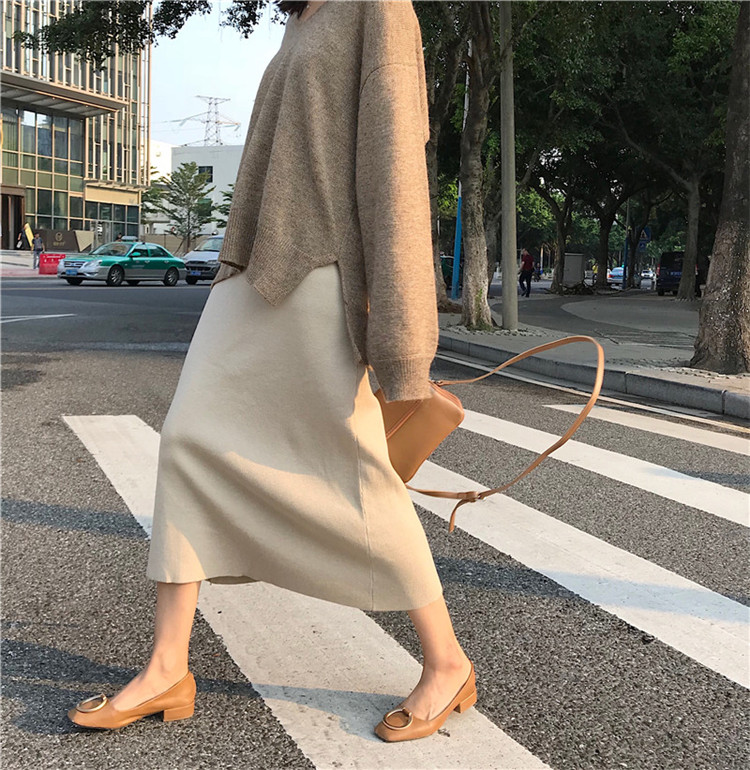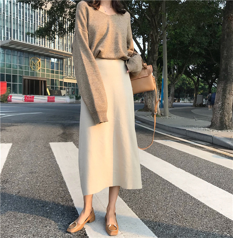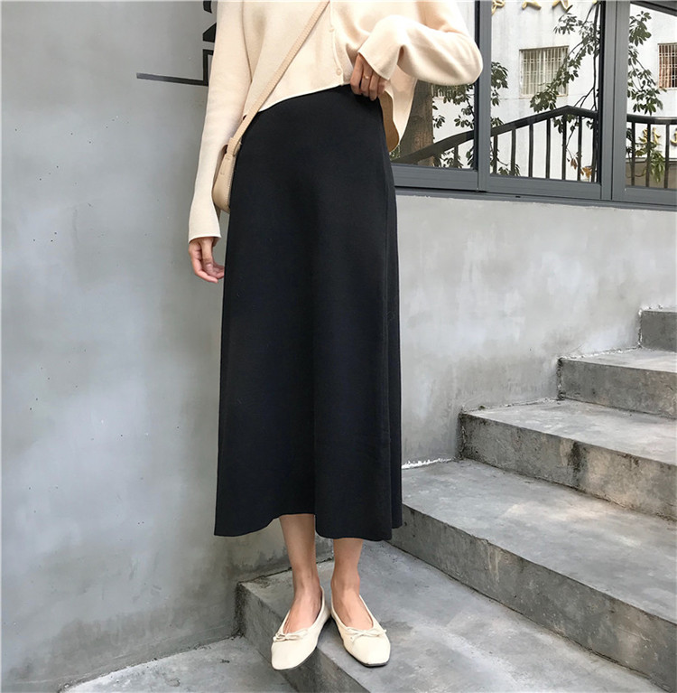 / 韓版chic簡約百搭中長款寬松高腰包臀裙針織半身裙女秋2018新款潮