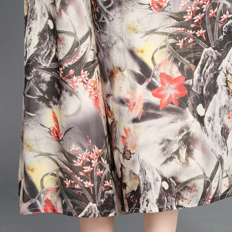 / 夏季雪紡印花闊腿褲女九分褲薄款韓版高腰寬松裙褲春休閑碎花褲裙