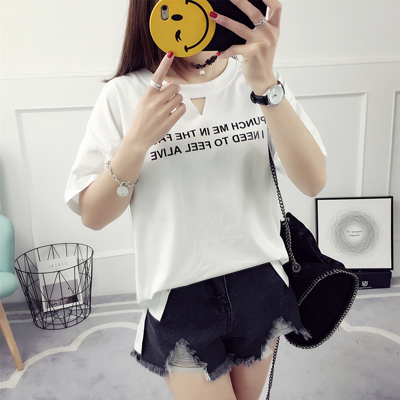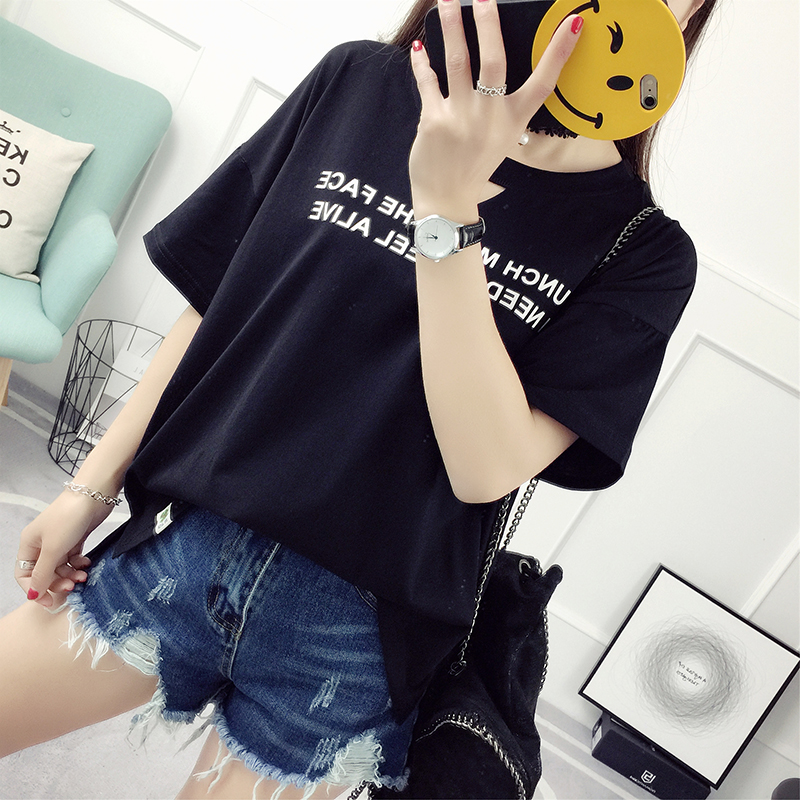 短袖t恤女字母印花百搭夏季打底衫新款夏裝衣服學生體恤小衫