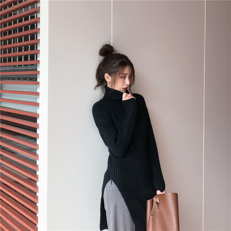/ 慵懶高領針織開叉毛衣時尚套裝純色休閑褲闊腿褲長褲chic兩件套女