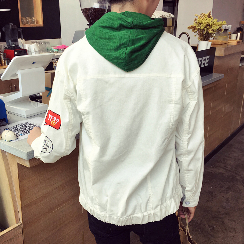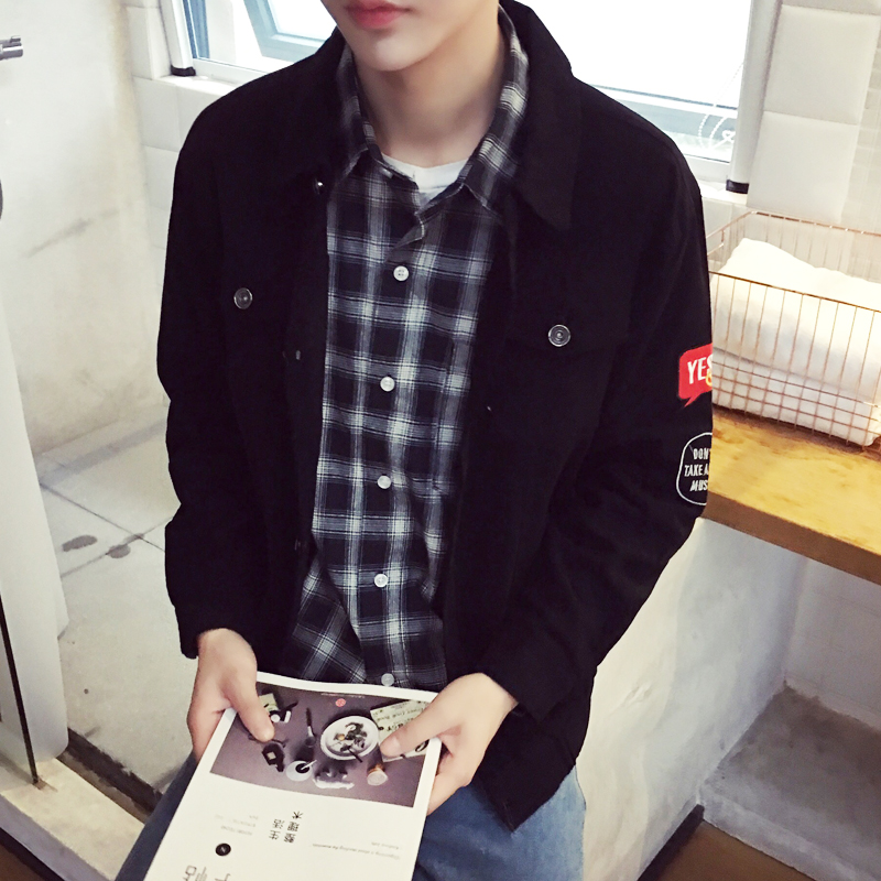 男裝新潮原創貼標休閑燈芯絨單排扣男士夾克外套