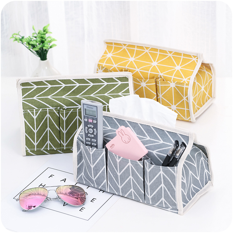 / 棉麻茶幾收納盒遙控器收納盒創意布藝家用客廳桌面抽紙盒辦公學習
