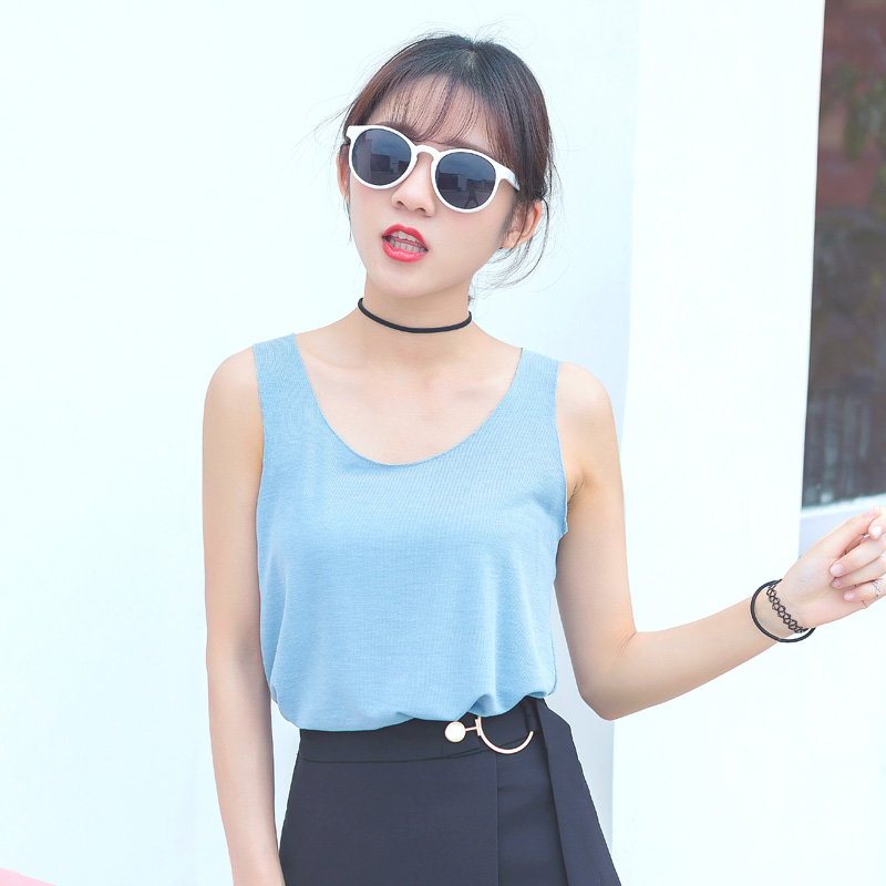2017夏裝新款韓版女裝無袖針織吊帶背心短款修身綁帶打底衫上衣潮