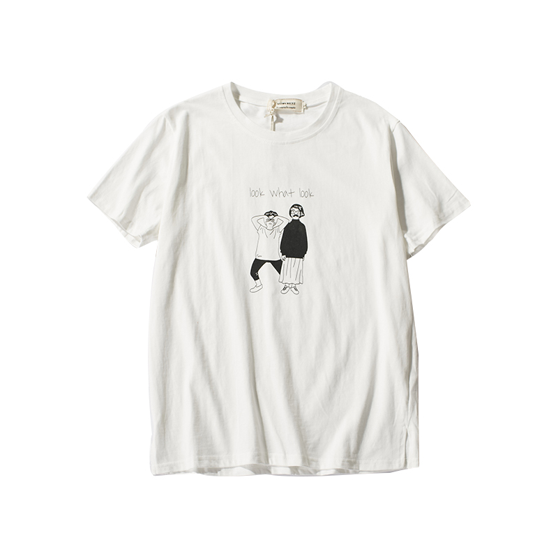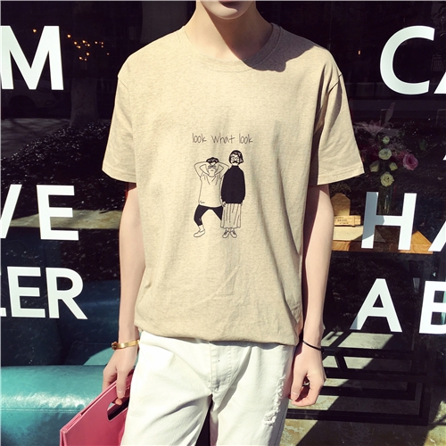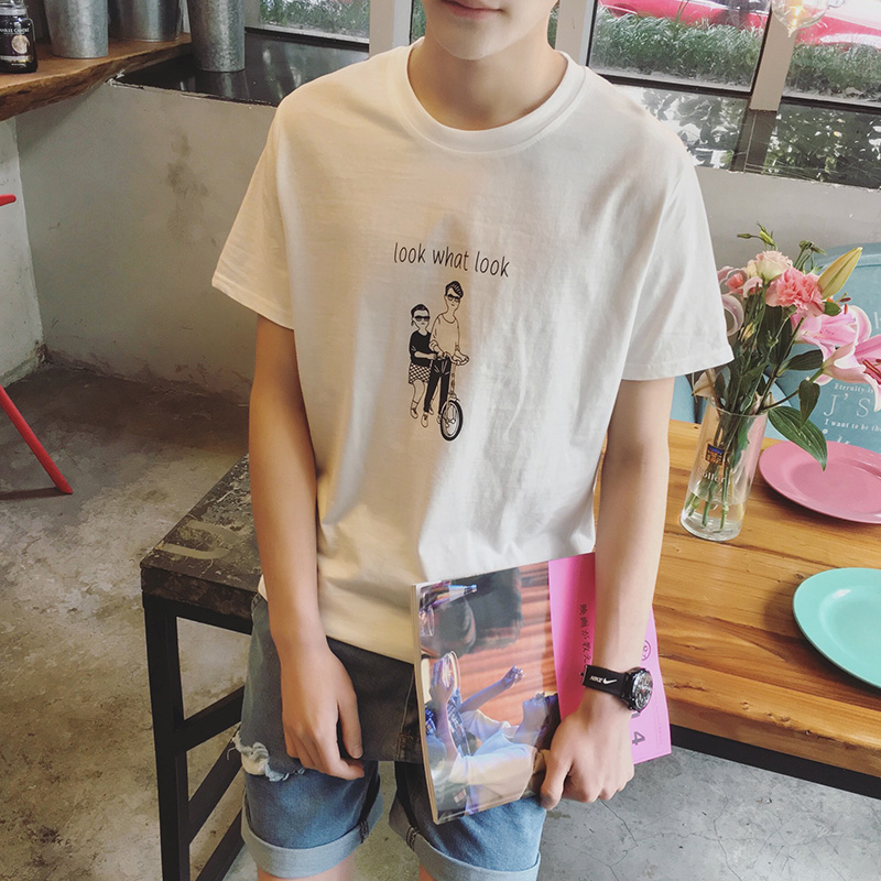 / 夏裝卡通情侶印花字母韓版寬松男士短袖T恤