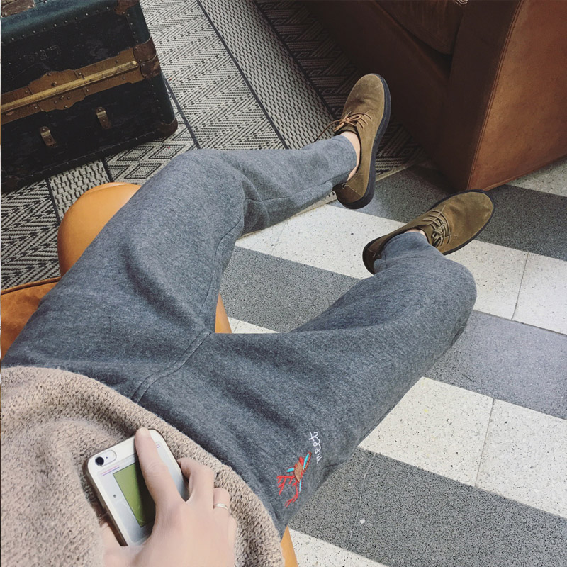 / 男裝日系復古小腳休閑褲小鹿刺繡加厚棉褲運動褲潮