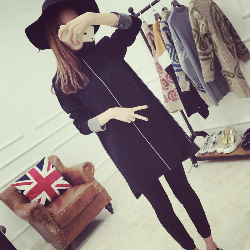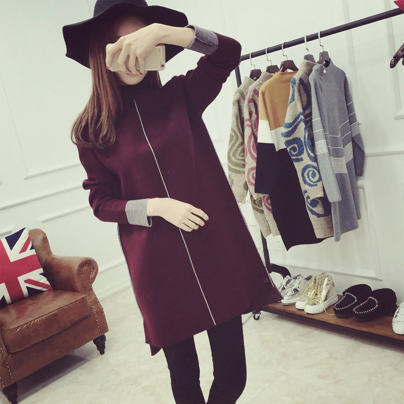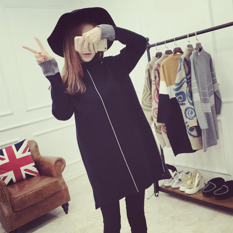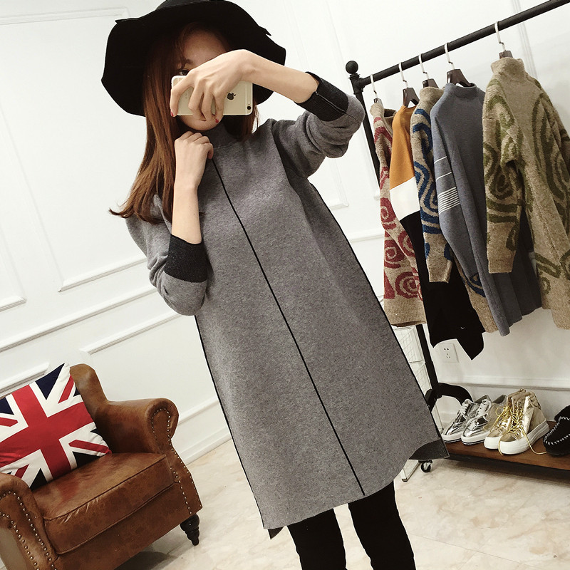 / 長款毛衣女秋冬高領針織衫打底連衣裙秋裝女裝新款潮女士衣服