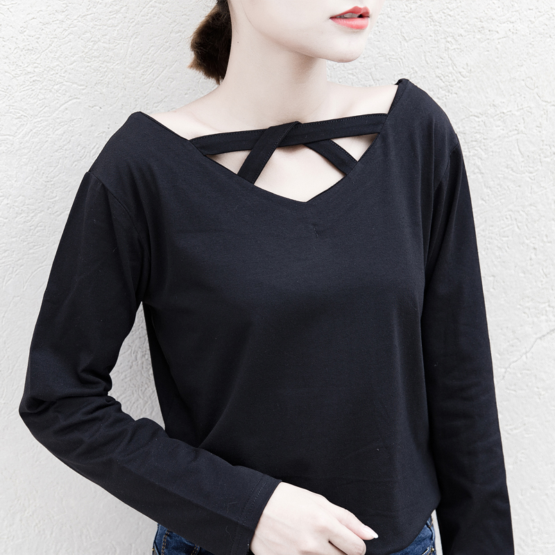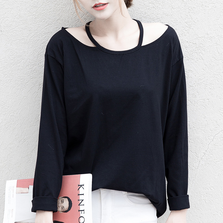 女裝韓版鏤空打底衫顯瘦春秋季新款t恤女長袖簡約T上衣學生大碼潮