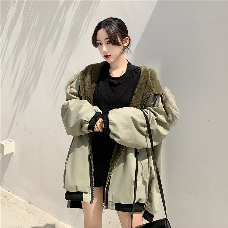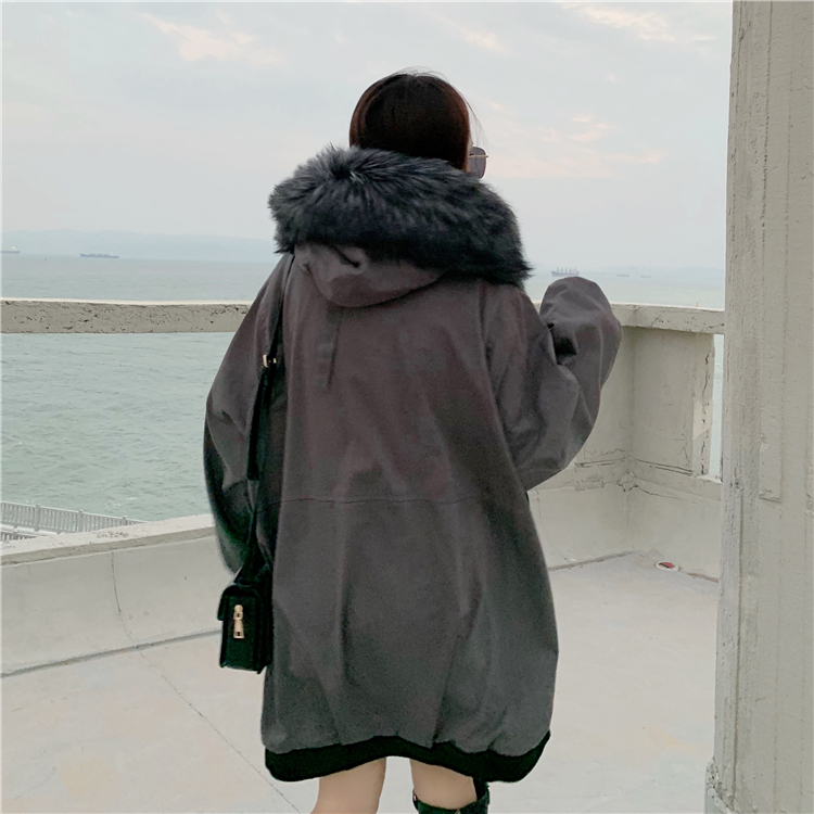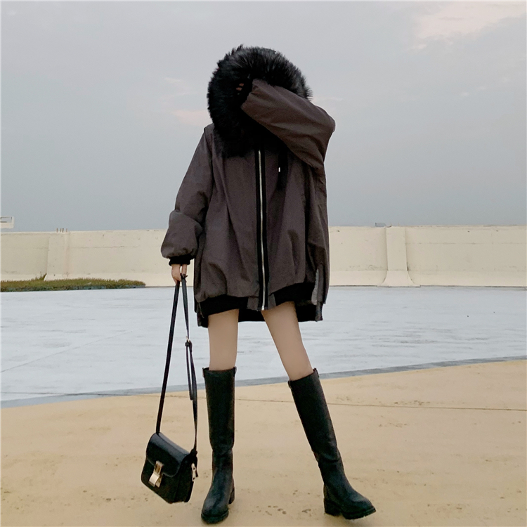 / 保暖冬季新款韓版寬松百搭大毛領加絨連帽中長款長袖休閑棉服外套